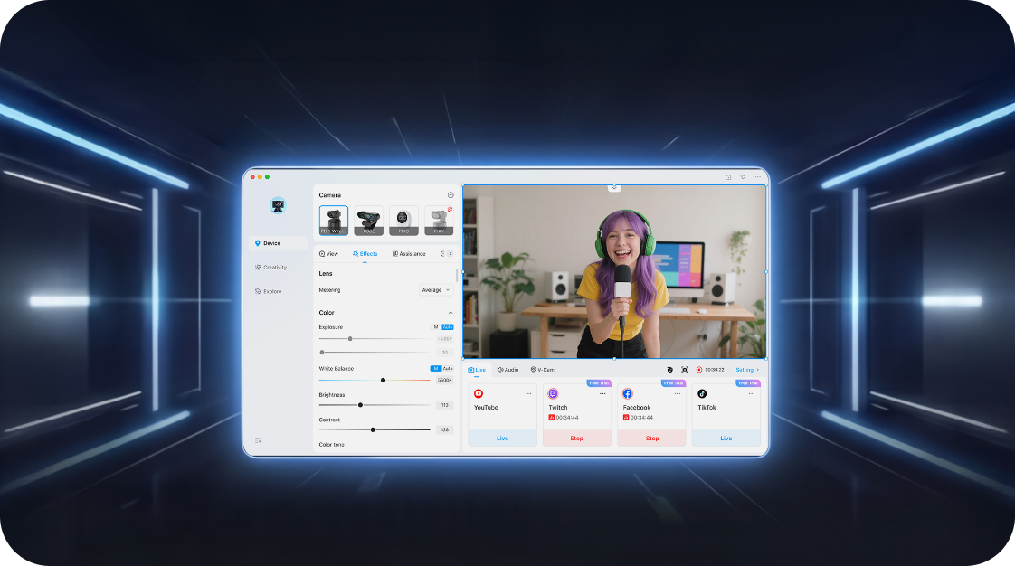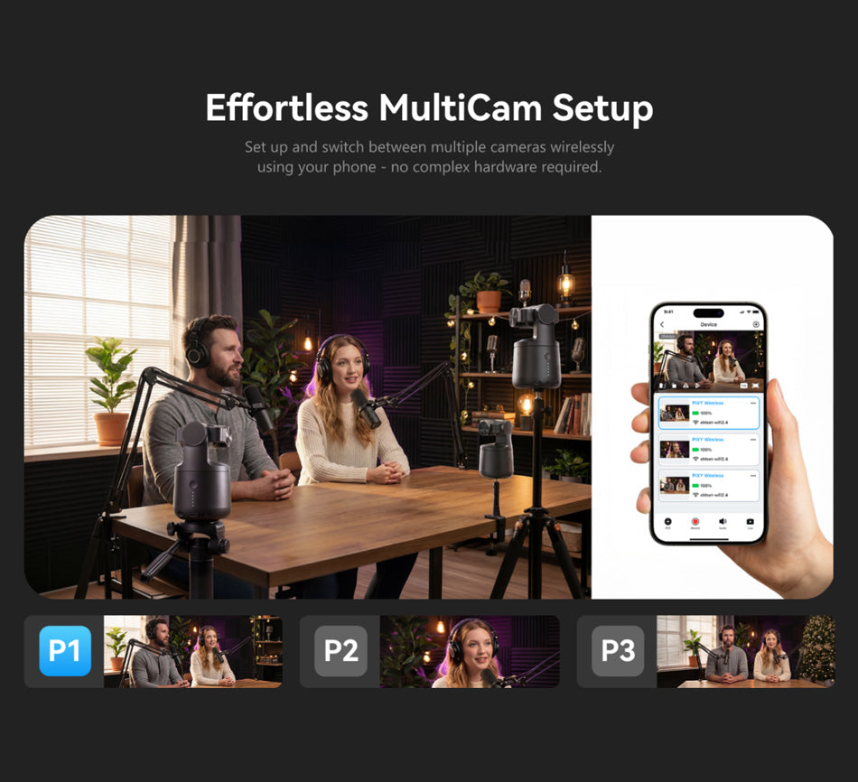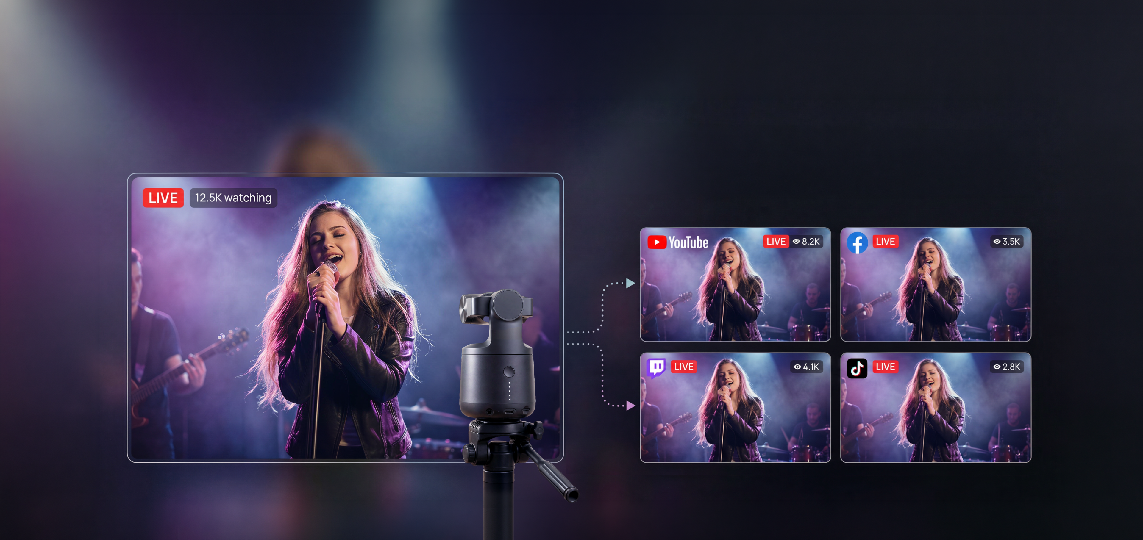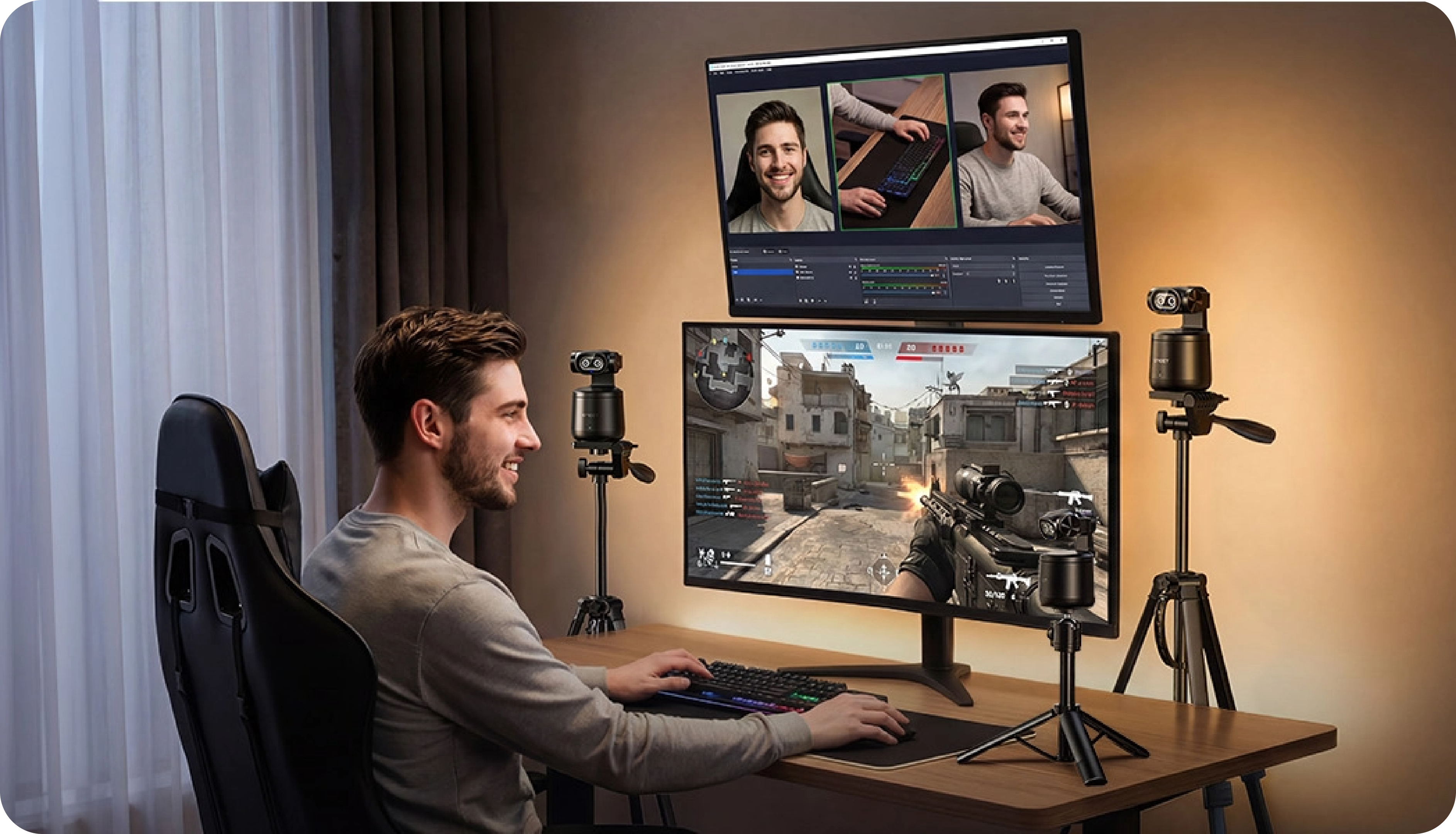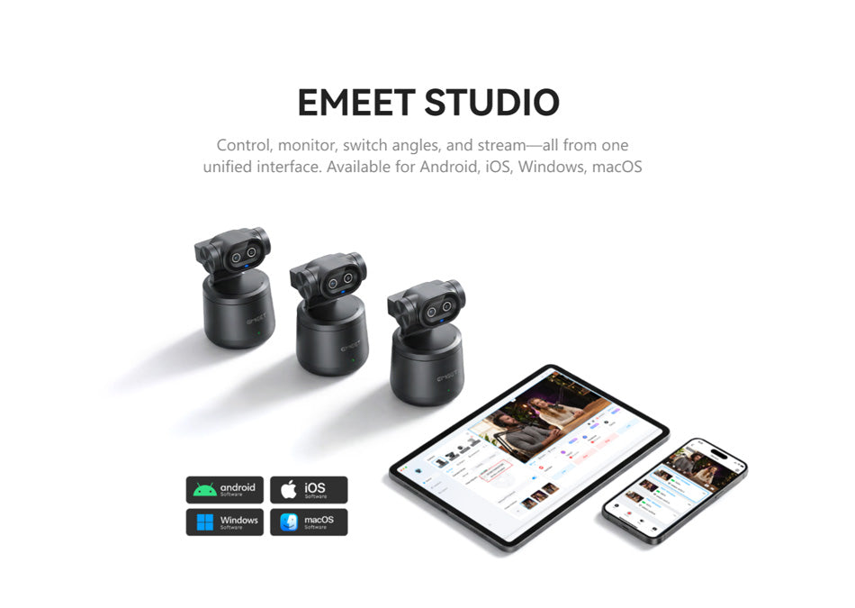 Control, monitor, switch angles, and stream—all from one unified interface. Available for Android, iOS, Windows, macOS.