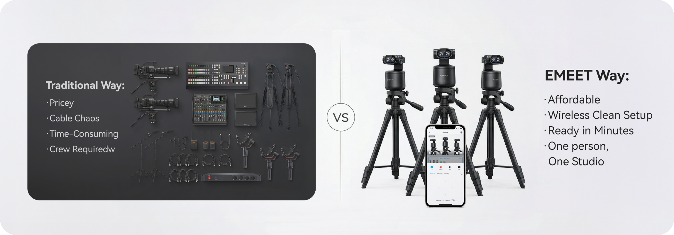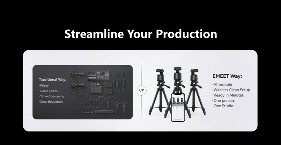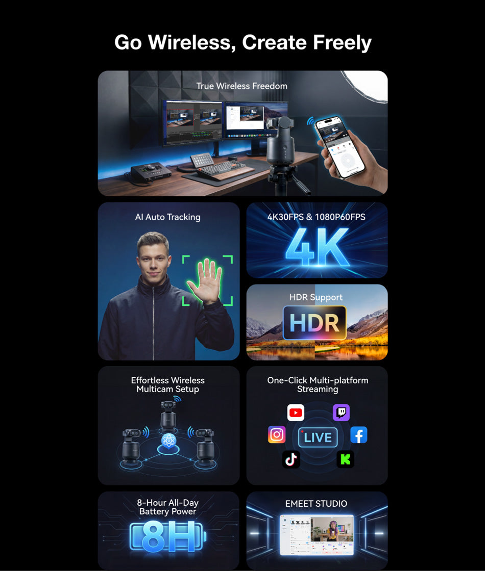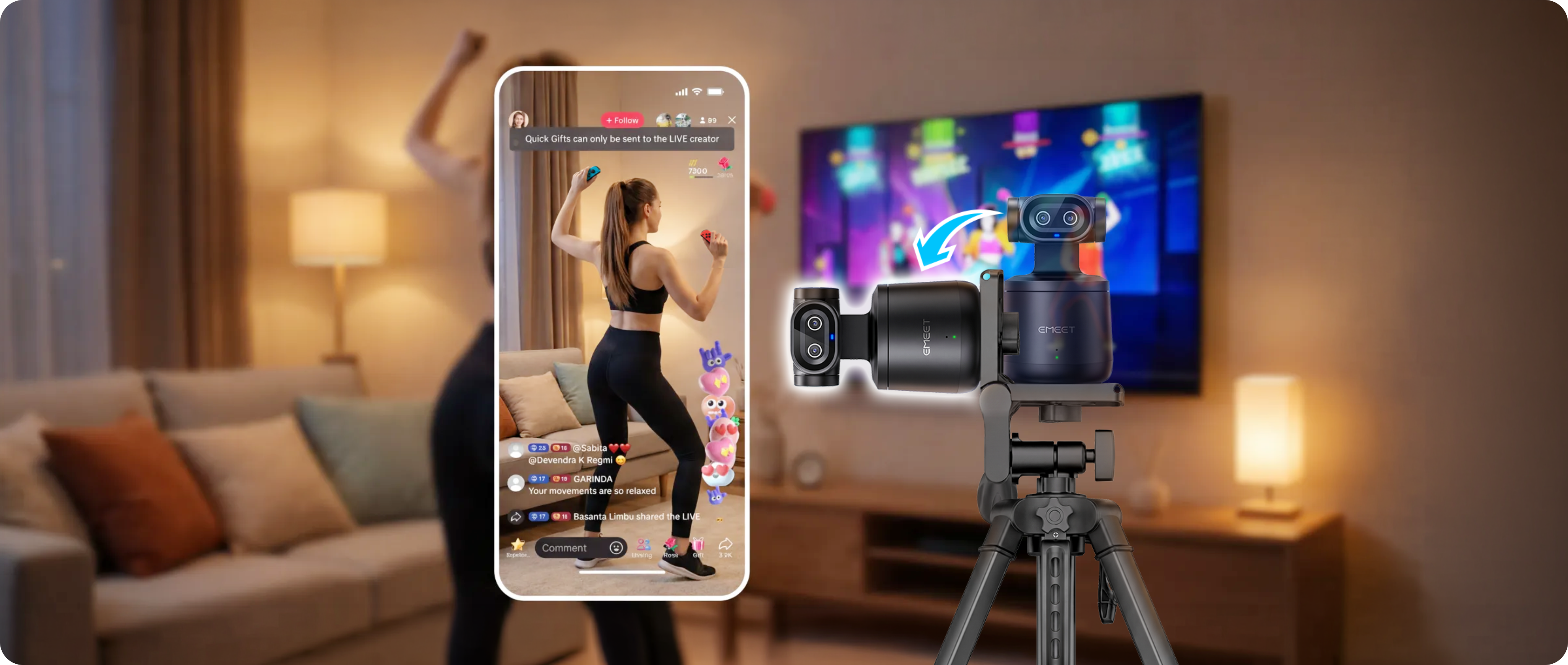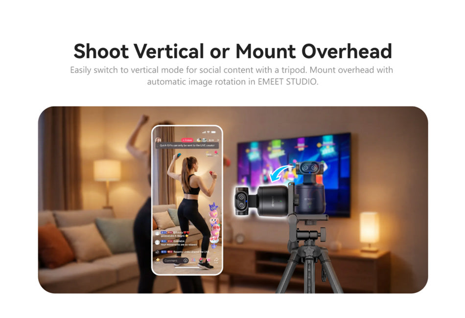 Easily switch to vertical mode for social content with a tripod. Mount overhead with automatic image rotation in EMEET STUDIO.