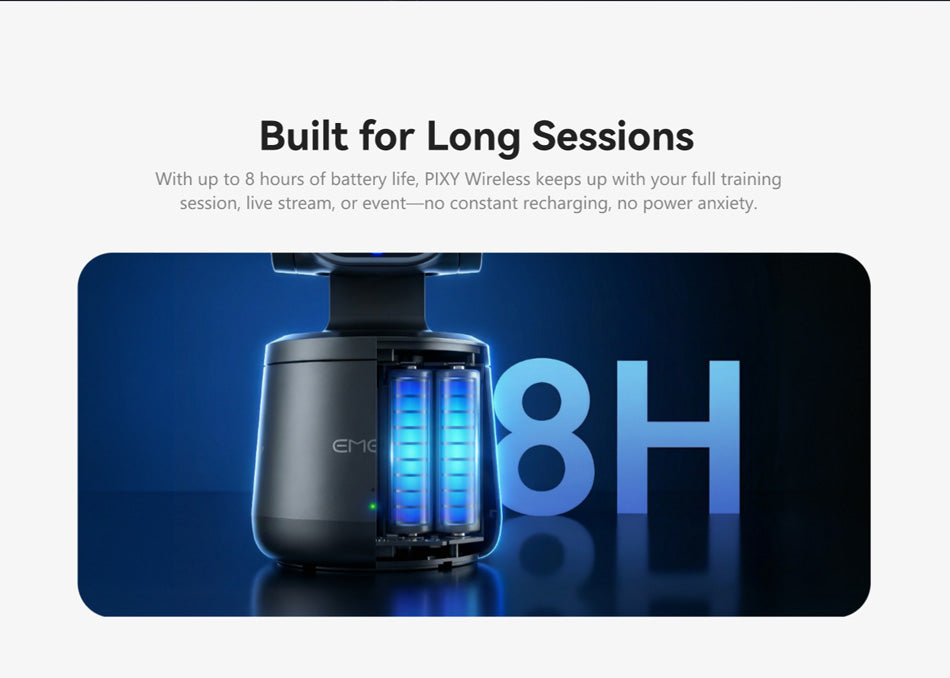 With up to 8 hours of battery life, PIXY Wireless keeps up with your full training session, live stream, or event—no constant recharging, no power anxiety.
