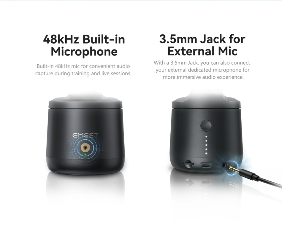Built-in 48kHz mic for convenient audio capture during training and live sessions.