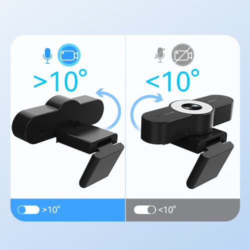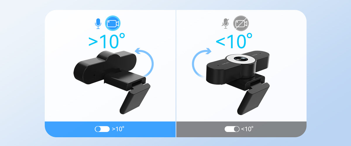 When the lens body is close to the upper bracket and the angle is less than 10°, the electronic privacy function is turned on. At the same time, the video will be closed and the microphone will be muted. Your screen will also show the mute icon.