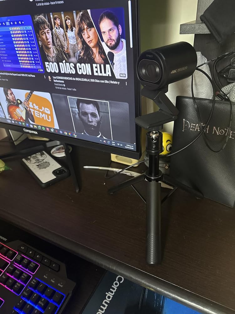 - 三脚を使って、ウェブカムを好みの場所に配置します。たとえば、自分のポートレートをフレームに収めるのに最適な位置を選びます。