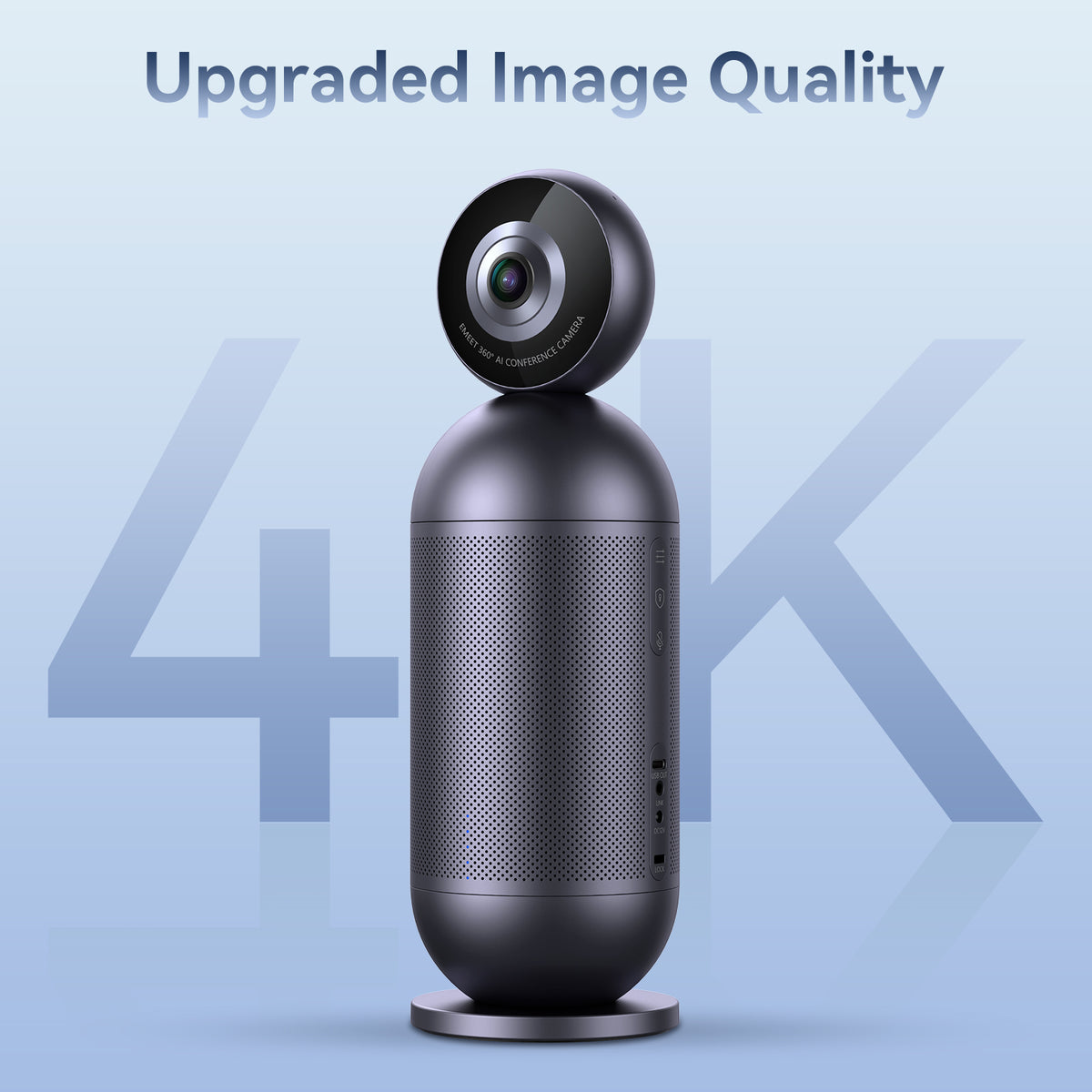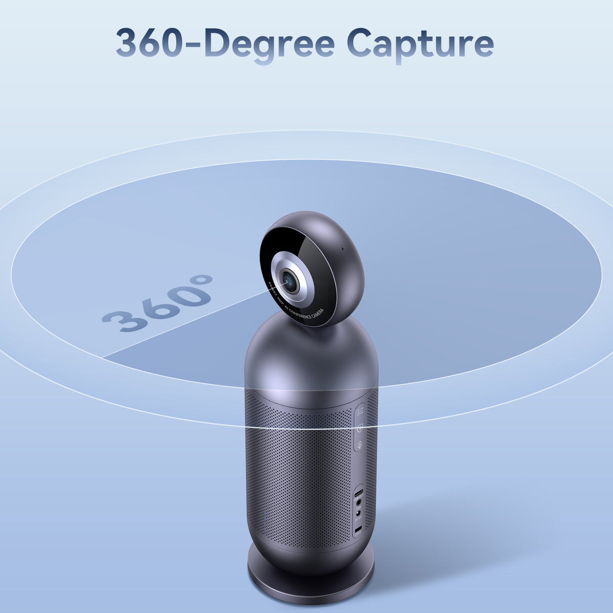 EMEET Meeting Capsule Pro uses advanced algorithms and multiple microphones to accurately track and capture sound from different directions, combined with facial recognition technology for speaker positioning.