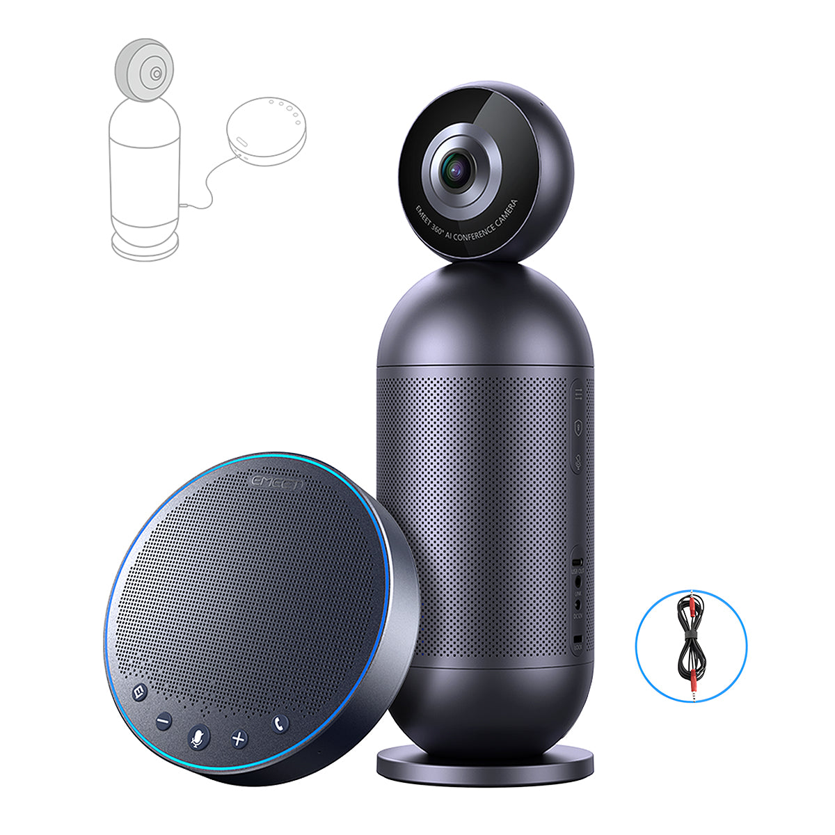 The EMEET Meeting Capsule Pro can wirelessly cascade with a Co-Camera EMEET StreamCam One(Model: E700403) for video and also connect with a speakerphone for audio via a wired connection at the same time.
