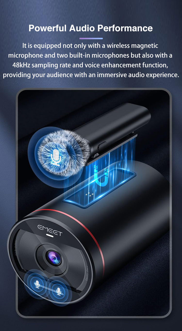 It is equipped not only with a wireless magnetic microphone and two built-in microphones but also with a 48kHz sampling rate and voice enhancement function, providing your audience with an immersive audio experience.