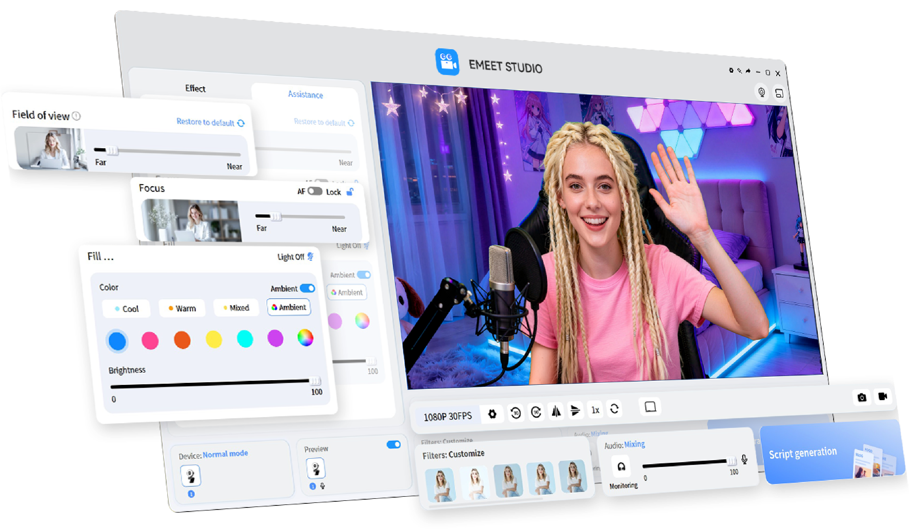 Enable desktop mode in EMEET STUDIO easily together with a tripod.