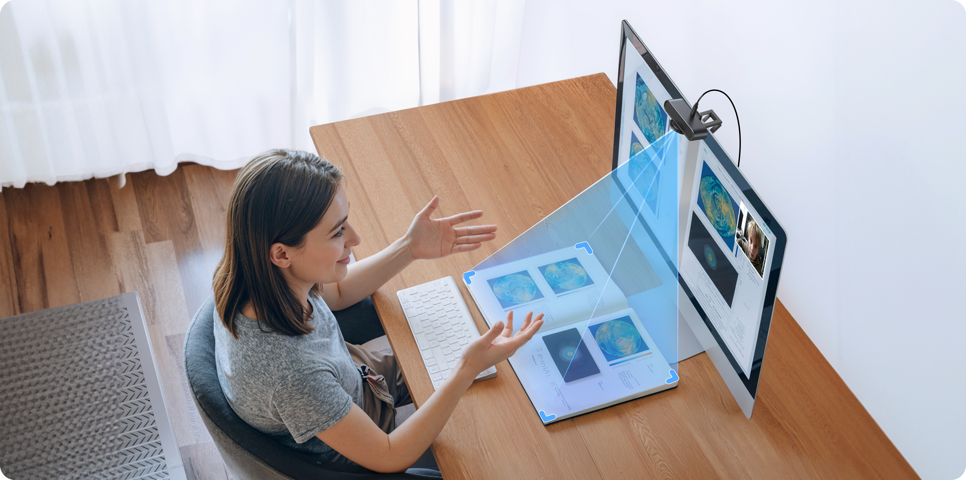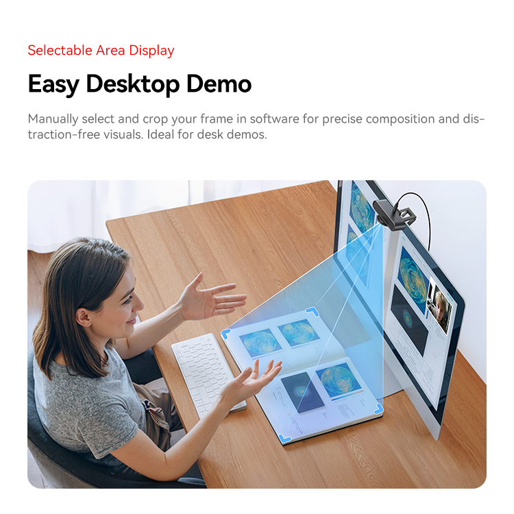 Manually select and crop your frame in EMEET STUDIO for precise composition and distraction-free visuals. Ideal for whiteboard and desk demos.