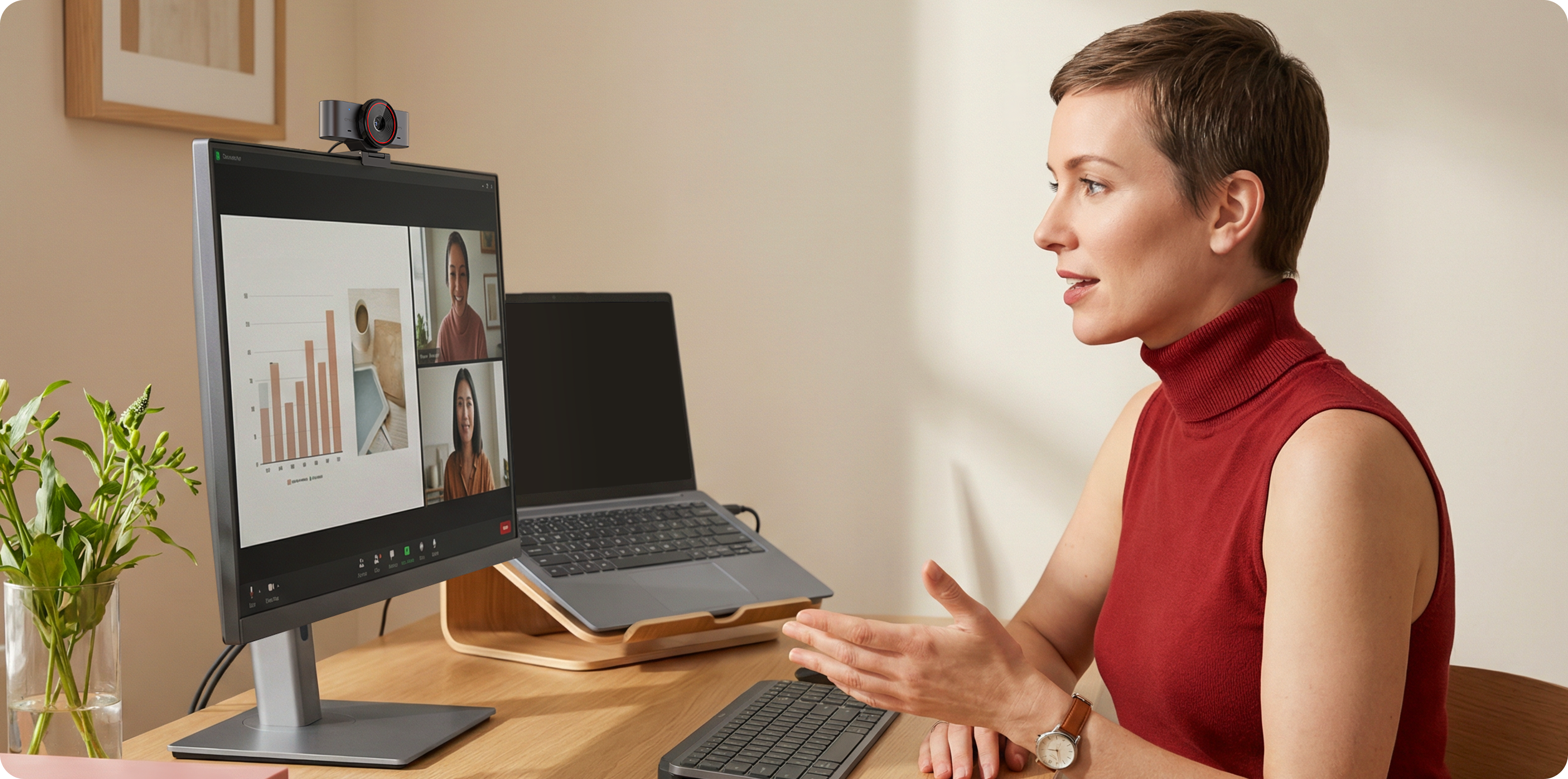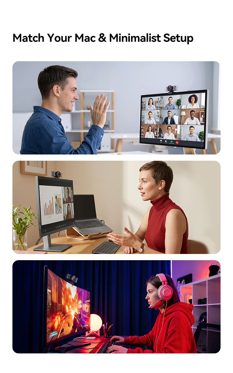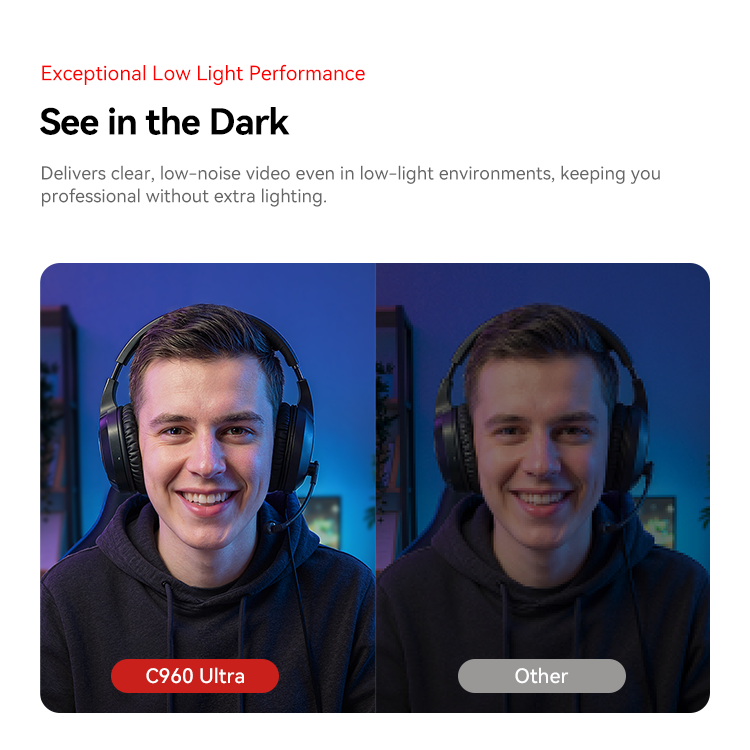 Delivers clear, low-noise video even in low-light environments, keeping you professional without extra lighting.