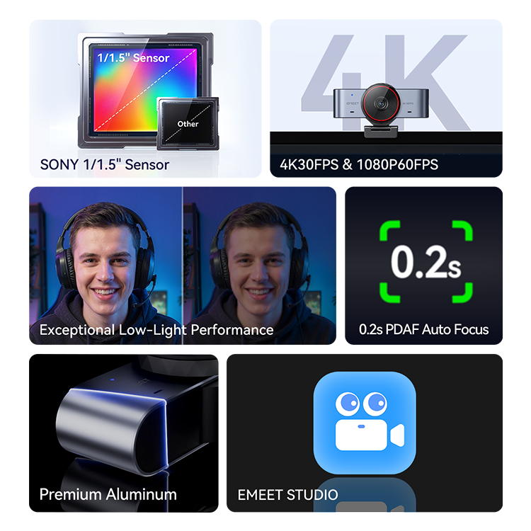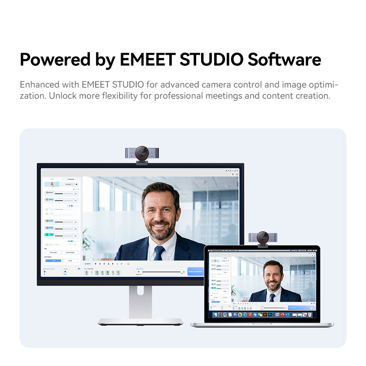 Enhanced with EMEET STUDIO for advanced camera control and image optimization. Unlock more flexibility for professional meetings and content creation