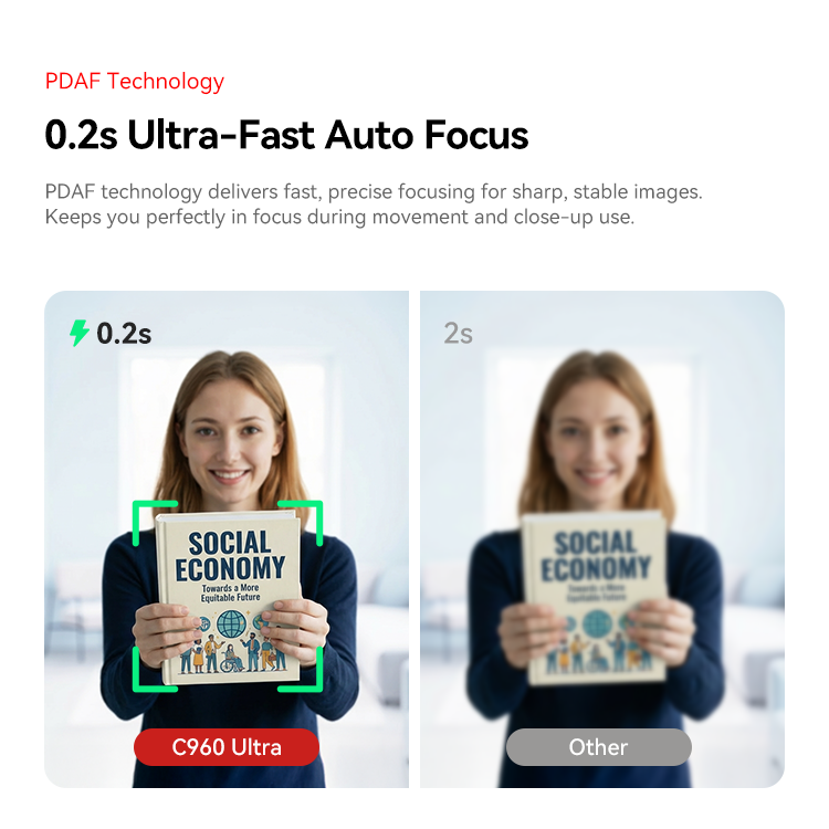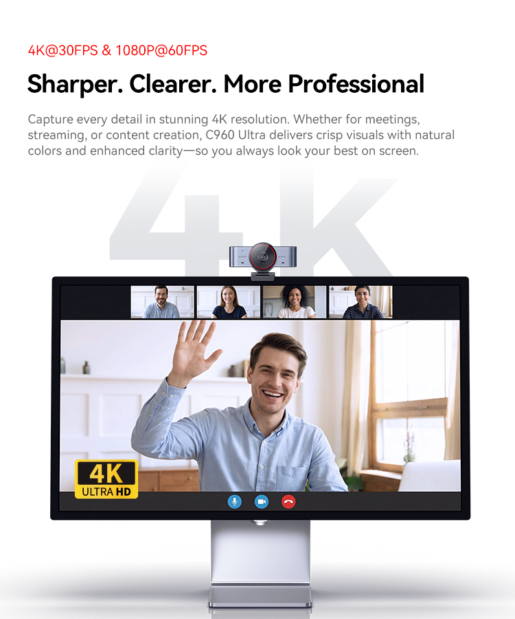 Capture every detail in stunning 4K resolution. Whether for meetings, streaming, or content creation, C960 Ultra delivers crisp visuals with natural colors and enhanced clarity-so you always look your best on screen.